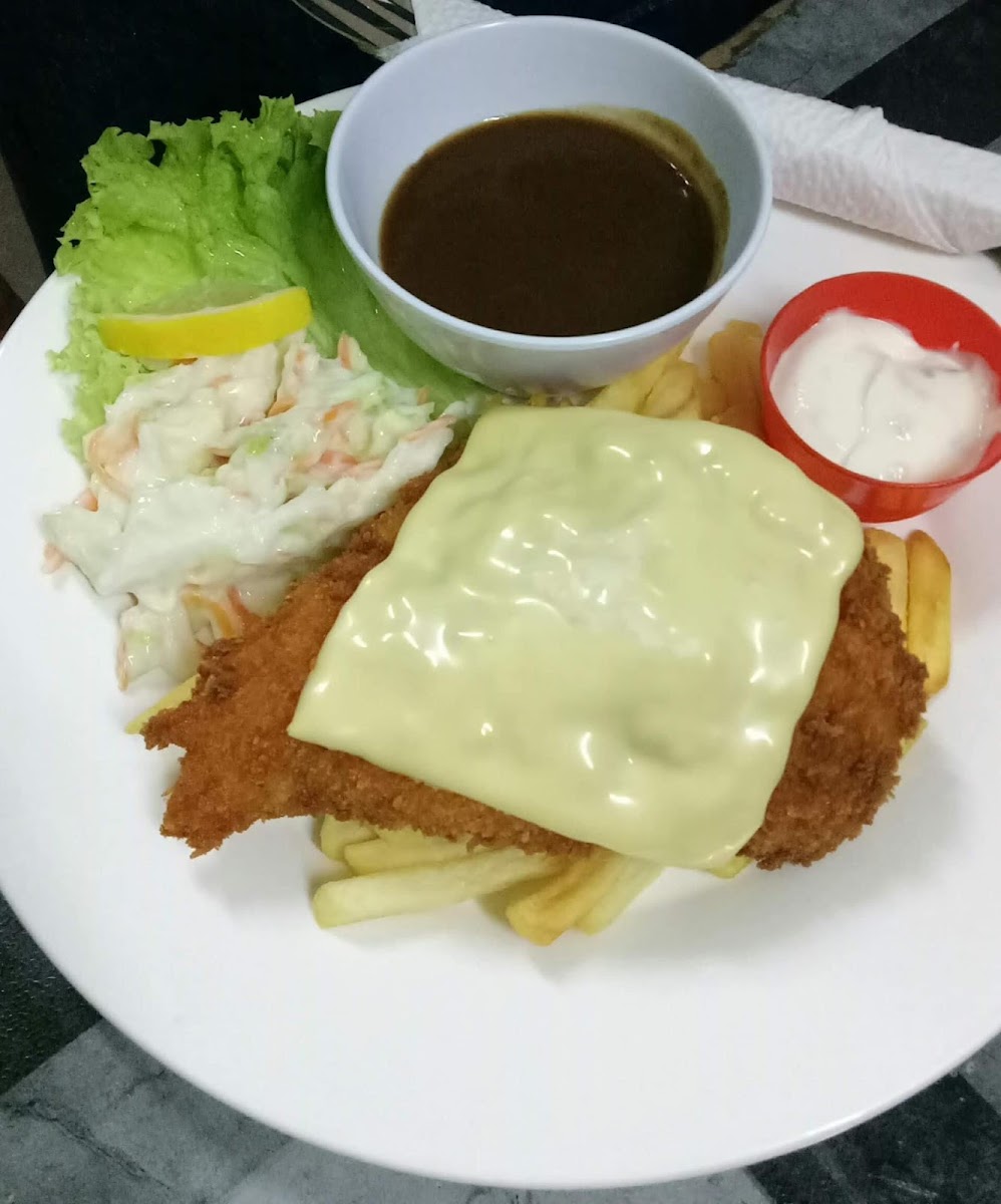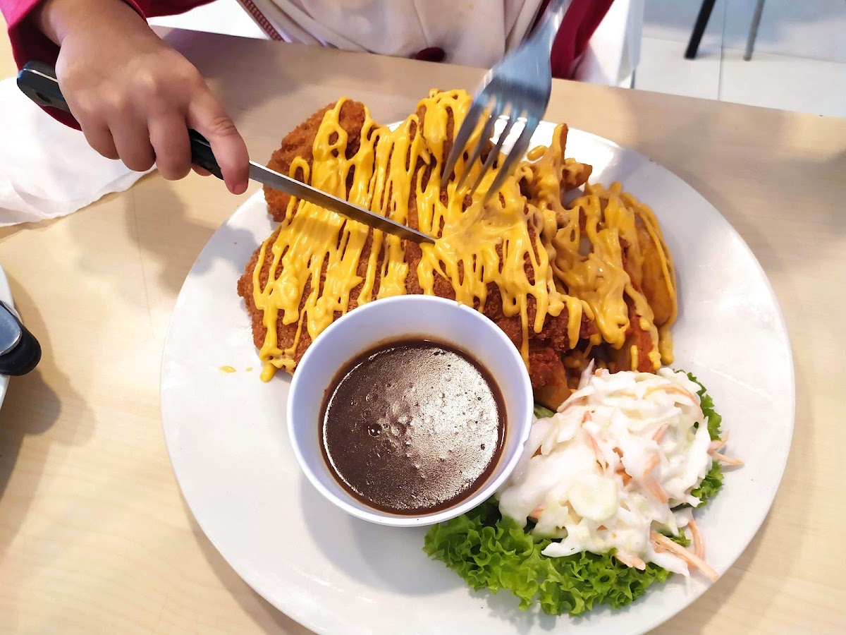 One of the standout dishes at Dinella Western Food is the Fried Chicken Chop Double Cheesy, a crispy and juicy chicken chop smothered with a rich, gooey cheese sauce that takes comfort food to the next level. For those who prefer a bit of spice, the Fried Chicken Chop with Jalapeno Cheese Wedges is a must-try, offering a unique kick from the jalapenos that pairs perfectly with the creamy cheese wedges.